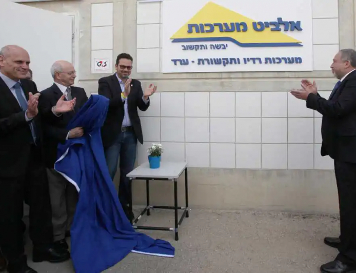 На фотографии министр обороны Авигдор Либерман на открытии компании «Эльбит маарехот» котируется на бирже, контролируется израильским бизнесменом Мики Федерманом, который также владеет сетью отелей «Дан» |